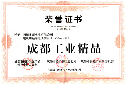 2月28日下午,以“供需协同新引擎、成都智造新名片”为主题的2024“成都造”供需对接暨成都工业精品发布会在成都举行。活动现场,来自成都100家企业的100个产品经过层层筛选,被评选为“成都工业精品”,以“成都智造”新名片的名义正式面向全球发布。多联实业“建筑用绝缘电工套管(dn16-dn50)”产品荣获“第一批成都工业精品”称号。