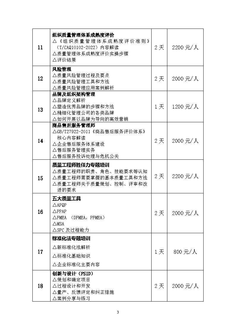 为深入贯彻落实《中共中央国务院关于开展质量提升行动的指导意见》和国家有关部委关于在新时期“推进全面质量管理”的要求,进一步推动广大企业深入开展全员、全过程、全方位的质量管理,运用系统的质量理论和方法促进质量提升,成都市质量管理协会拟在2026年度举办以下培训: