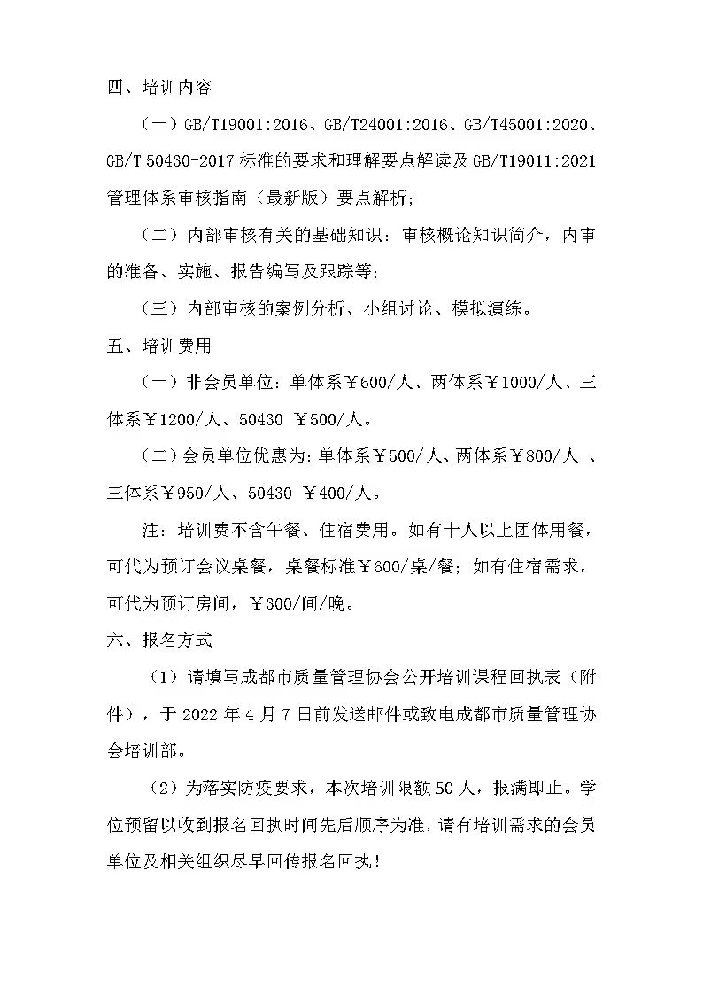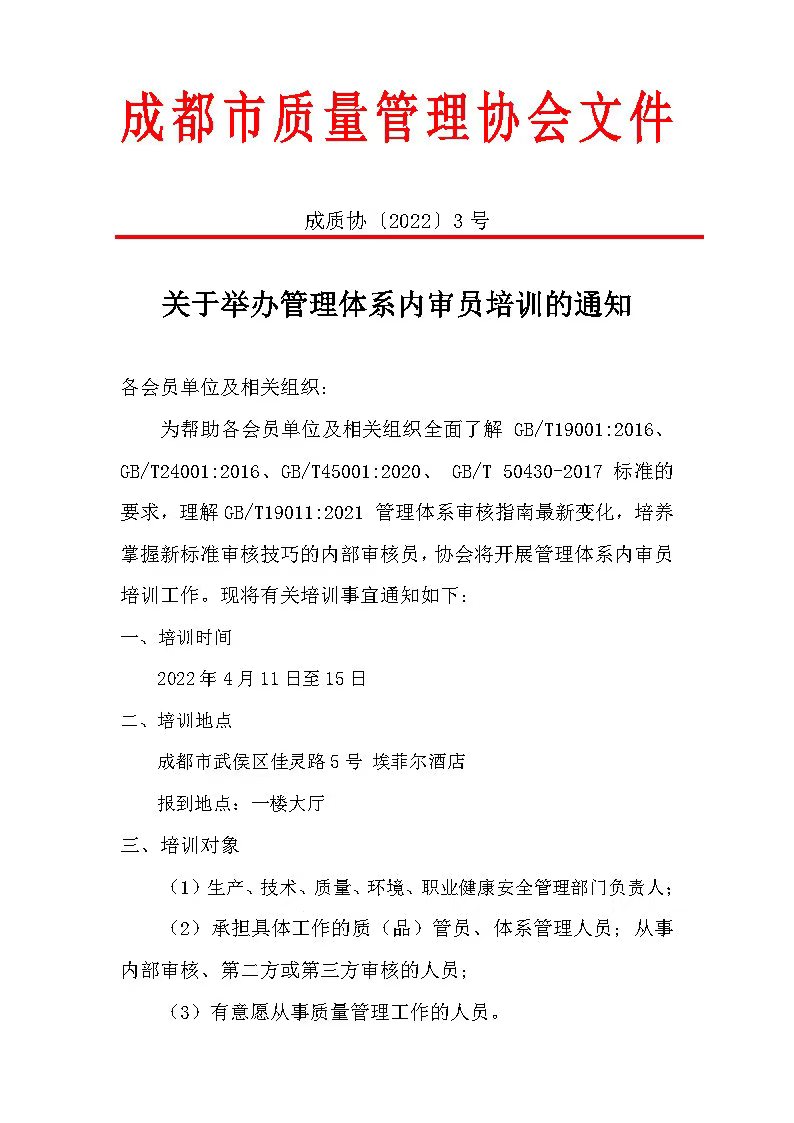 管理体系内审员培训通知
