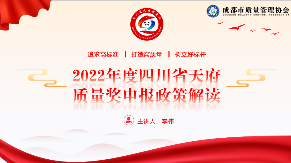 为帮助各会员单位及相关单位全面了解《四川省天府质量奖评选管理办法》、《四川省天府质量奖评选实施细则》、《四川省天府质量奖评审规范》,解读申报书填写、自评报告撰写、特色亮点提炼等方式方法,成都市质量管理协会于8月3日举办了“2022年度四川省天府质量奖解读”线上公益讲座