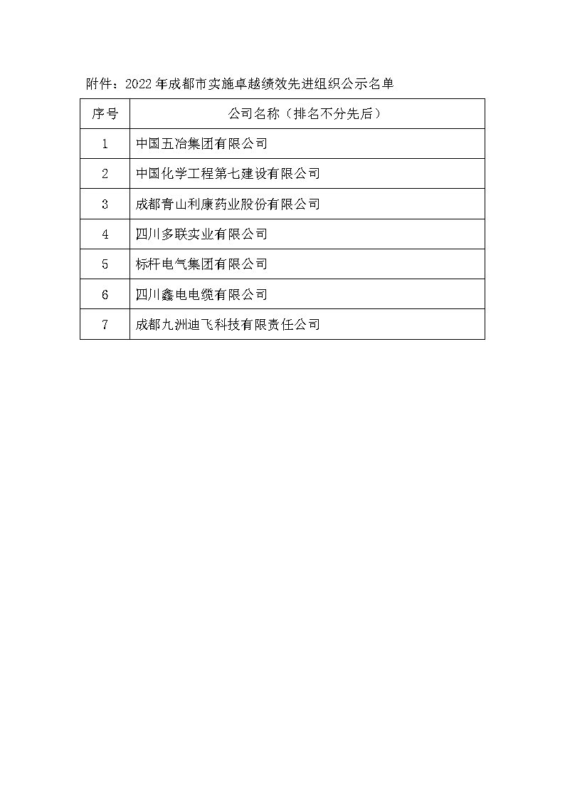 关于2022年成都市实施卓越绩效先进组织 拟表彰单位公示