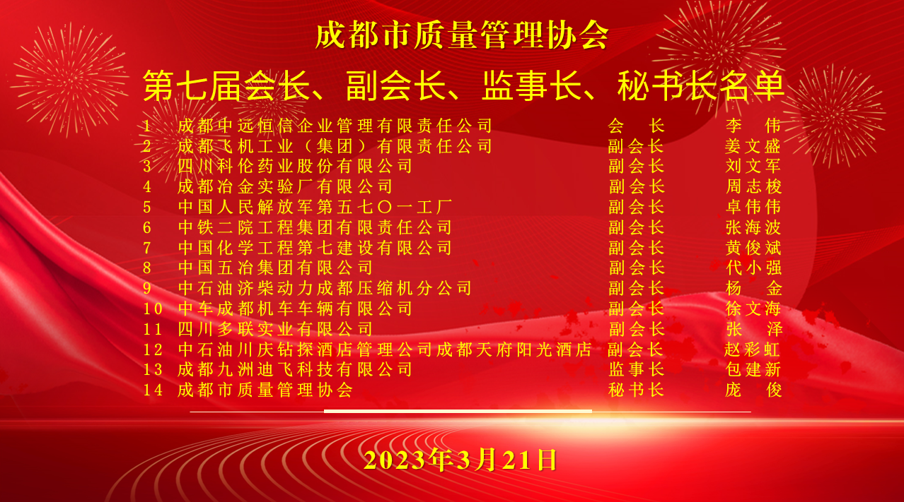 成都市质量管理协会换届大会暨第七届第一次会员代表大会成功召开